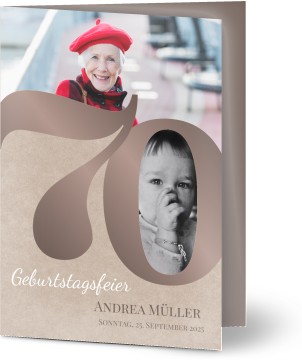Ohne Software im Kartenkonfigurator die Einladungen einfach online erstellen und drucken lassen. Gestalten Sie Ihre einladungskarten 70 geburtstag mit Text Bildern oder Logos individuell. Geburtstag können Sie als flache Karte Klappkarte oder Doppelklappkarte bestellen.