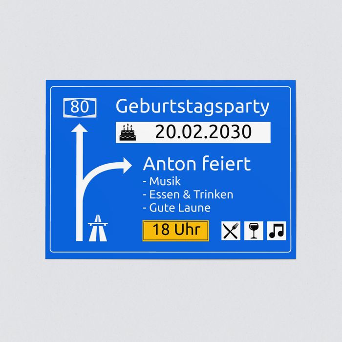 Geschwindigkeitsbeschränkung 80 auf Geburtstagseinladung Diese Vorlage ist für eine gängigen Kartengröße gedacht. Geburtstag bestellt haben können Sie sich entspannt zurücklehnen denn wir erledigen den Rest. Das entspricht DIN A6.